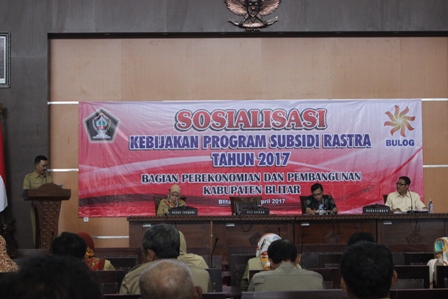 Blitar – Pemerintah Kabupaten Blitar berkomitmen untuk mensejahterakan masyarakat. Ini sesuai dengan visi Bupati/Wakil Blitar, Menuju Kabupaten Blitar Lebih Sejahtera, Maju dan Berdaya Saing. Satu diantara upaya untuk mensejahterakan masyarakat yakni dengan disitribusi beras sejahtera (rastra) bagi rumah tangga miskin. Sebelumnya rastra dikenal dengan raskin (beras untuk masyarakat miskin). Hal ini disampaikan oleh Plt. Sekretaris Daerah Kabupaten Blitar, Drs. Totok Subihandono, M.Si saat membuka Sosialisasi Kebijakan Program Subsidi Rastra Tahun 2017 di Lantai 3 Kantor Bupati Blitar, Selasa (25/4).