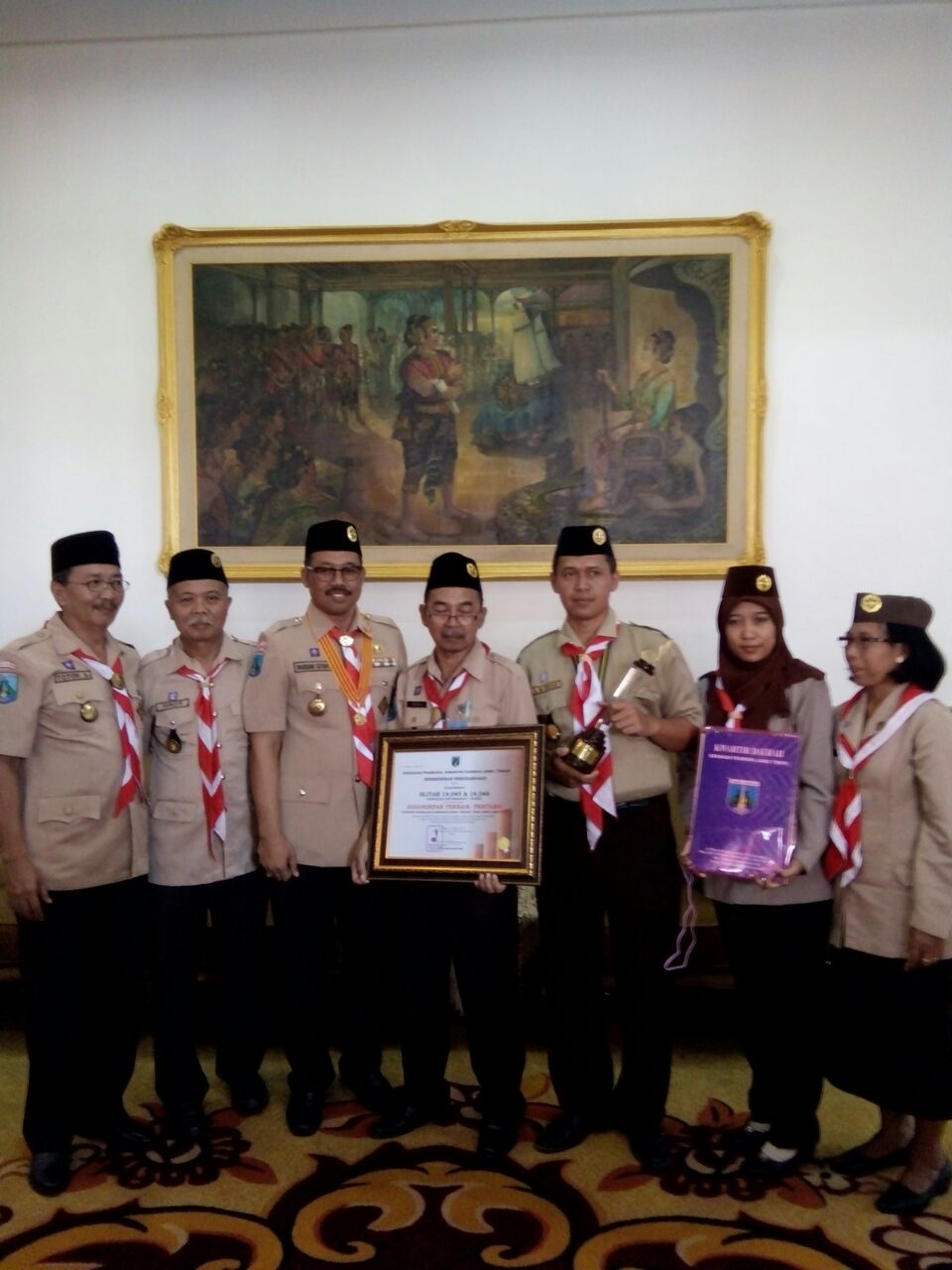 Blitar – Keluarga Besar Kwartir Cabang Pramuka Kabupaten Blitar kembali menorehkan prestasi. Kali ini SDN Babadan 1 Wlingi menjadi juara 1 dalam lomba Gugus Depan Unggulan Kwarda Jawa Timur Tahun 2017. Gubernur Jawa Timur, Soekarwo yang juga Ketua Majelis Pembimbing Daerah (Kamabida) Jawa Timur menyerahkan piagam, tropi dan uang pembinaan kepada Ketua Harian Kwarcab Kabupaten Blitar, Drs. Totok Subihandono di Gedung Grahadi Surabaya, Senin (14/8) pada kegiatan Peringatan Hari Pramuka ke-56 Tahun 2017.