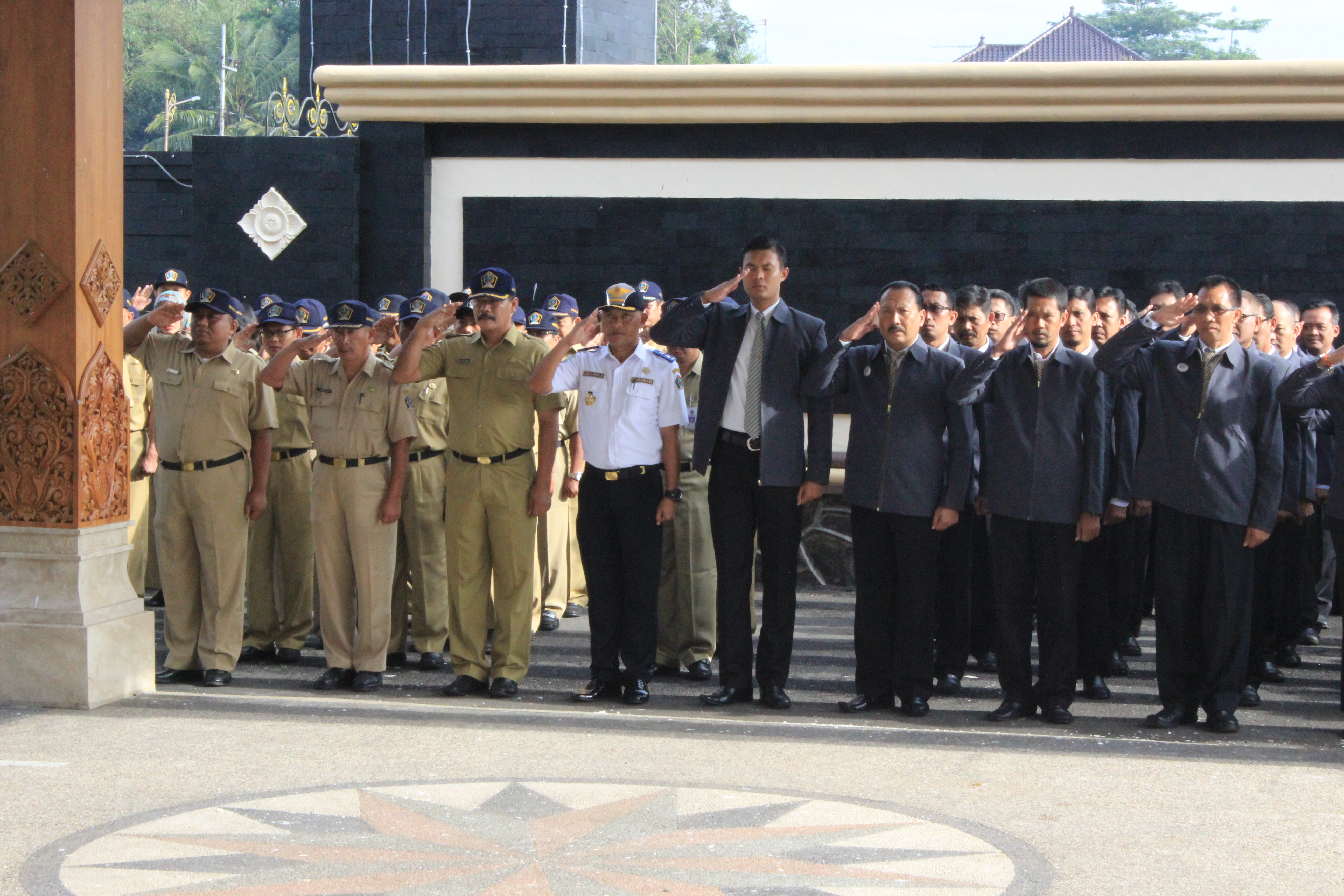 Blitar – Ada yang berbeda dari apel pagi hari Senin di Lingkungan Pemerintah Kabupaten Blitar. Senin, 20 Nopember 2017 di Halaman Pendopo Sasana Adhi Praja. Apel dipimpin langsung oleh Bupati Blitar, Drs. H.Rijanto, MM dan diikuti seluruh karyawan/karyawati Pemerintah Kabupaten Blitar termasuk peserta Diklat Kepemimpinan III dan Diklat Kepemimpinan IV Angkatan 155 Tahun 2017. Dalam kesempatan tersebut, orang nomor satu di Kabupaten Blitar ini memberikan apresiasi kepada 40 peserta Diklatpim IV Angkatan 155 yang lulus dengan predikat sangat memuaskan, memuaskan dan cukup memuaskan. Bahkan hasil proyek perubahan (Proper) yang ditulis para peserta merupakan inovasi yang patut mendapat acungan jempol,