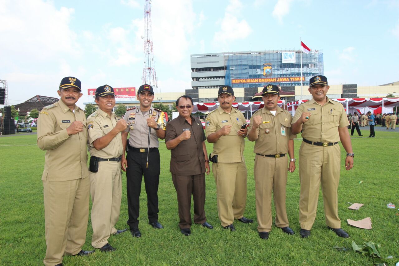 Provinsi Jawa Timur menggelar apel sinergitas tiga pilar yang dihadiri Forpimda Provinsi, Tiga pilar Kabupaten/Kota, Perwakilan Babinsa, Babinkamtibmas dan Kades/Lurah se- Jawa Timur. Ini ditandai dengan penandatanganan kesepahaman antara Polda dan Kodam disaksikan oleh gubernur serta pembacaan deklarasi dan penandatanganan pilkada damai oleh perwakilan Babinsa, Babinkamtibmas dan Kades/Lurah, di Halaman Mapolda Jatim, Jumat (20/4/2018).Dalam sambutannya, Gubernur Jawa Timur menegaskan, apel sinergitas ini barometer keseriusan penanganan keamanan. Tiga pilar mata dan telinga paling bawah merupakan sumber kenyamanan tiga pilar Jatim untuk sepakat damai. Ini akan menjadi model nasional 2018 palagan perdamaian.