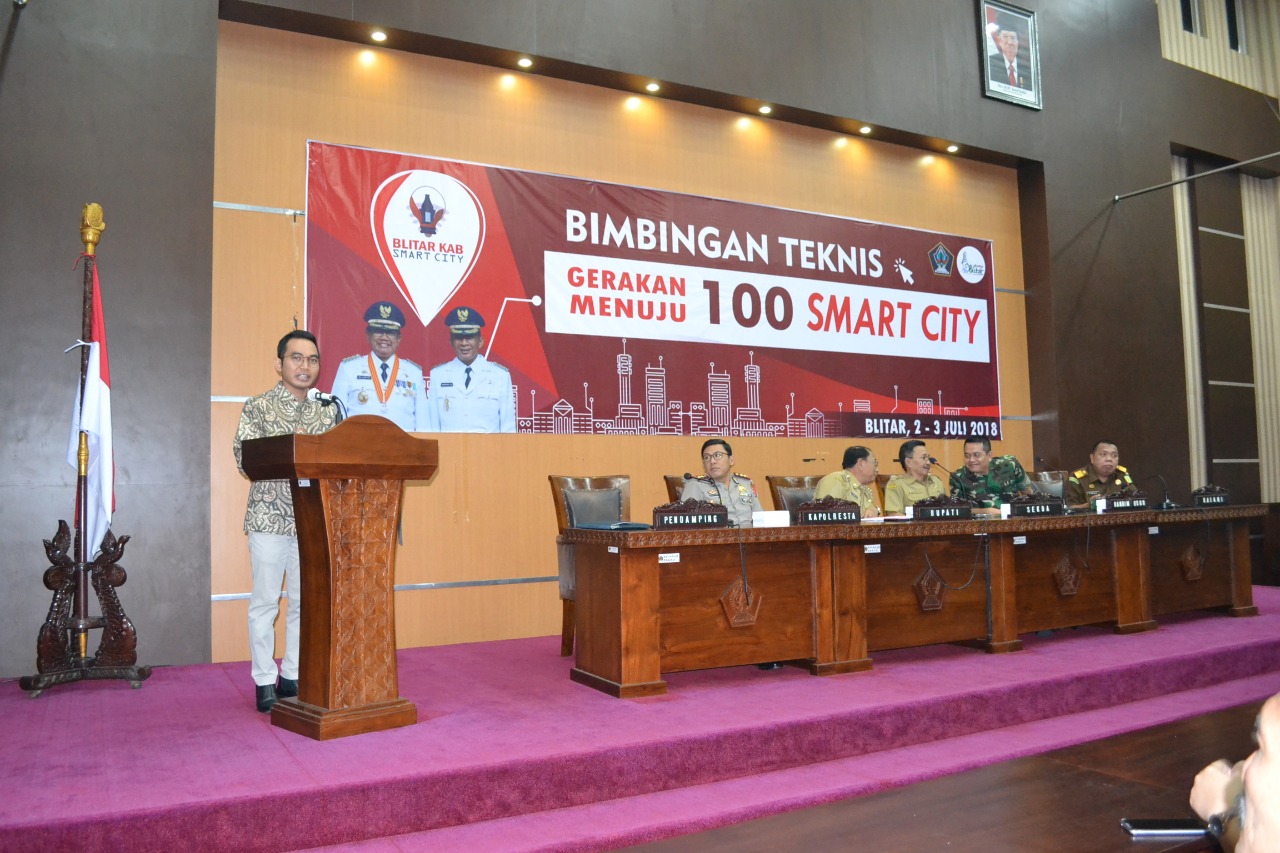 Gerakan 100 Smart City Pacu Tingkatkan Tata Kelola Pemerintahan yang Baik.Blitar – Menindaklanjuti MoU Bupati Blitar dengan Kementerian Komunikasi dan Informatika terkait Program Gerakan Menuju 100 Smart City, Pemerintah Kabupaten Blitar menggelar Bimbingan Teknis Gerakan Menuju 100 Smart City yang berlangsung tanggal 2-3 Juli 2018 di Ruang Rapat Candi Penataran. Tujuannya mensosialisasikan serta membangun kesepahaman antar stakeholder demi kesuksesan program ini. Sehingga harus terbangun konsolidasi teamwork yang solid. Hal ini disampaikan oleh Kepala Bappeda Kabupaten Blitar, Ir.Suwandito dalam laorannya pada kegiatan tersebut.