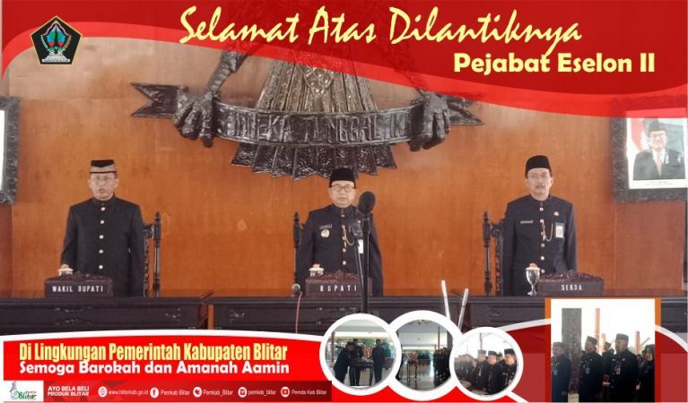 BLITARKAB. Bupati Blitar Drs. H. Rijanto, MM melantik 4 Pimpinan Tinggi Pratama dalam Upacara Pelantikan dan Pengambilan Sumpah Janji Jabatan Pimpinan Tinggi Pratama di Lingkungan Pemerintah Kabupaten Blitar, Rabu (27/02/2019) di Pendopo Agung Ronggo Hadinegoro.