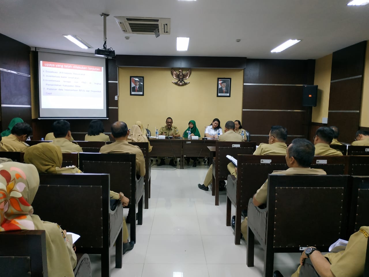 Rapat tersebut dibuka dan dipimpin oleh Asisten Pemerintahan dan Kesra Achmad Husein, perwakilan Dinas Kesehatan Provinsi Jawa Timur, Kepala Dinas Kesehatan Kabupaten Blitar, BPJS Kesehatan, dan dhadiri oleh seluruh OPD Kabupaten Blitar beserta Camat se-Kabupaten Blitar.