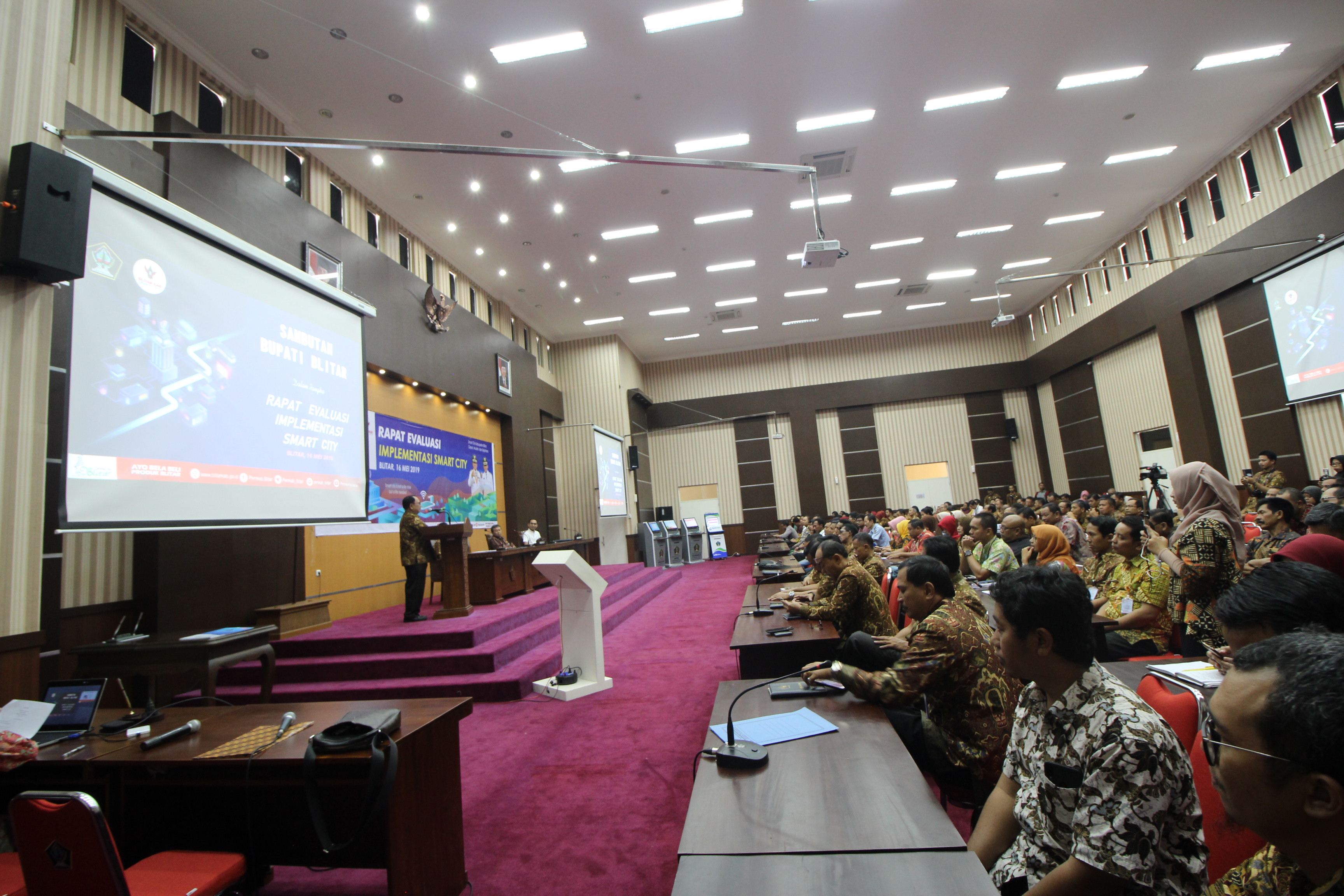 Rapat Evaluasi Smart City Kabupaten Blitar dihadiri dan dibuka langsung oleh Bupati Blitar Drs. H. Rijanto MM dengan menghadirkan narasumber Dr. Dedi Permadi Kementrian Komunikasi dan Informatika dengan diikuti oleh Forpimda, Imigrasi, Kepala SKPD, Cendekiawan, Swasta, Komunitas dan Perwakilan Relawan TIK Kabupaten Blitar.