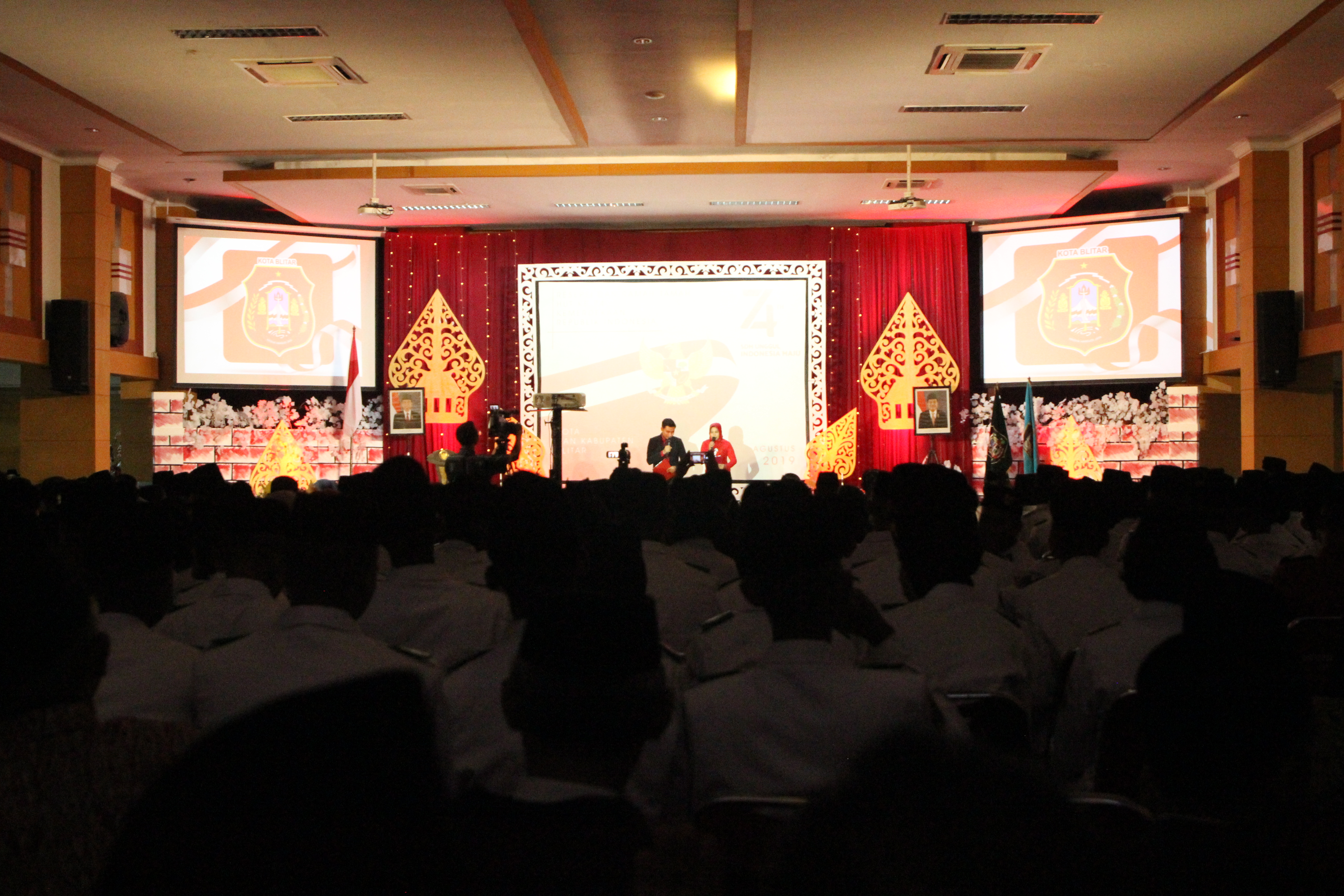 Blitar-Rangkaian peringatan Hari Ulang Tahun ke 74 Kemerdekaan Republik Indonesia gabungan Pemerintah Kabupaten dan kota Blitar ditutup dengan malam resepsi dan ramah tamah di Balai Kota Kusuma Wicitra, Sabtu (17/8/2019).