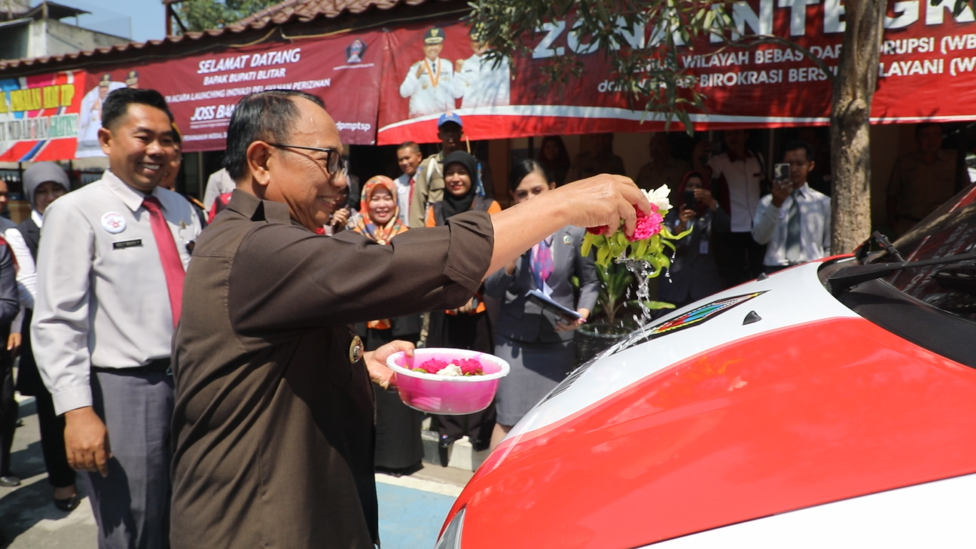 Usai potong tumpeng sebagai tanda syukur dilaunchingnya Joss Banget Mas, Bupati Blitar juga meresmikan pengoperasian mobil pelayanan Joss Banget Mas DPMPTSP Kab. Blitar dengan ditandai pemecahan kendi.