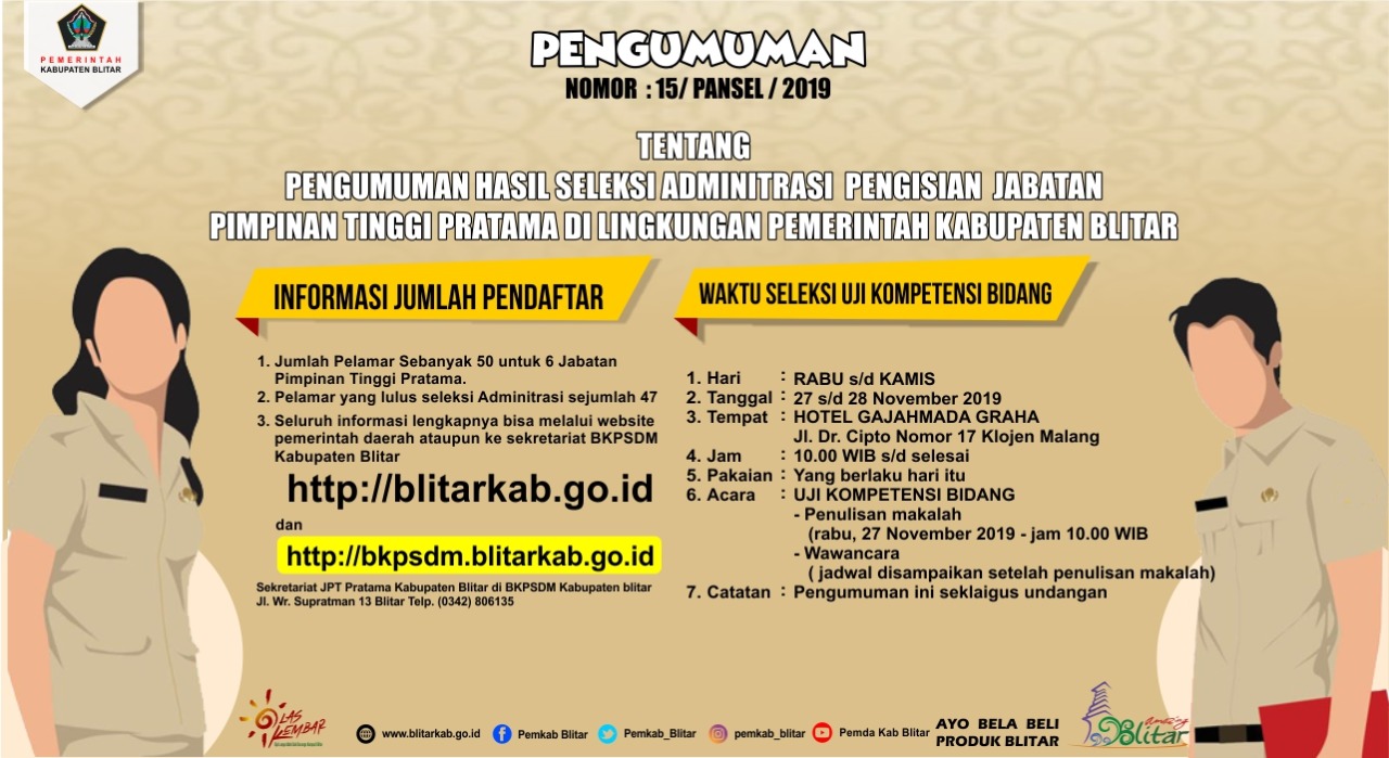 PENGUMUMAN HASIL SELEKSI ADMINISTRASI PENGISIAN JABATAN PIMPINAN TINGGI PRATAMA DI LINGKUNGAN PEMERINTAH KABUPATEN BLITAR