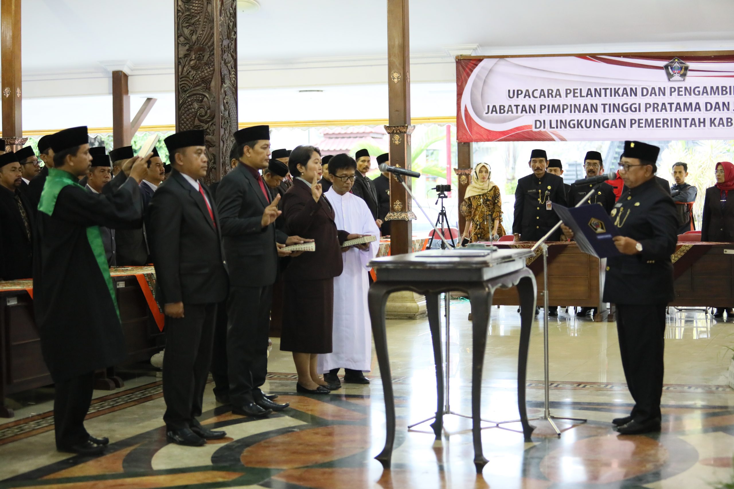 Ratusan pejabat yang dilantik tersebut meliputi Jabatan Pimpinan Tinggi Pratama, Pejabat Administrasi dan fungsional. Sebelum dilantik, mereka diambil sumpah/janji jabatan dengan dipandu oleh Bupati Rijanto.