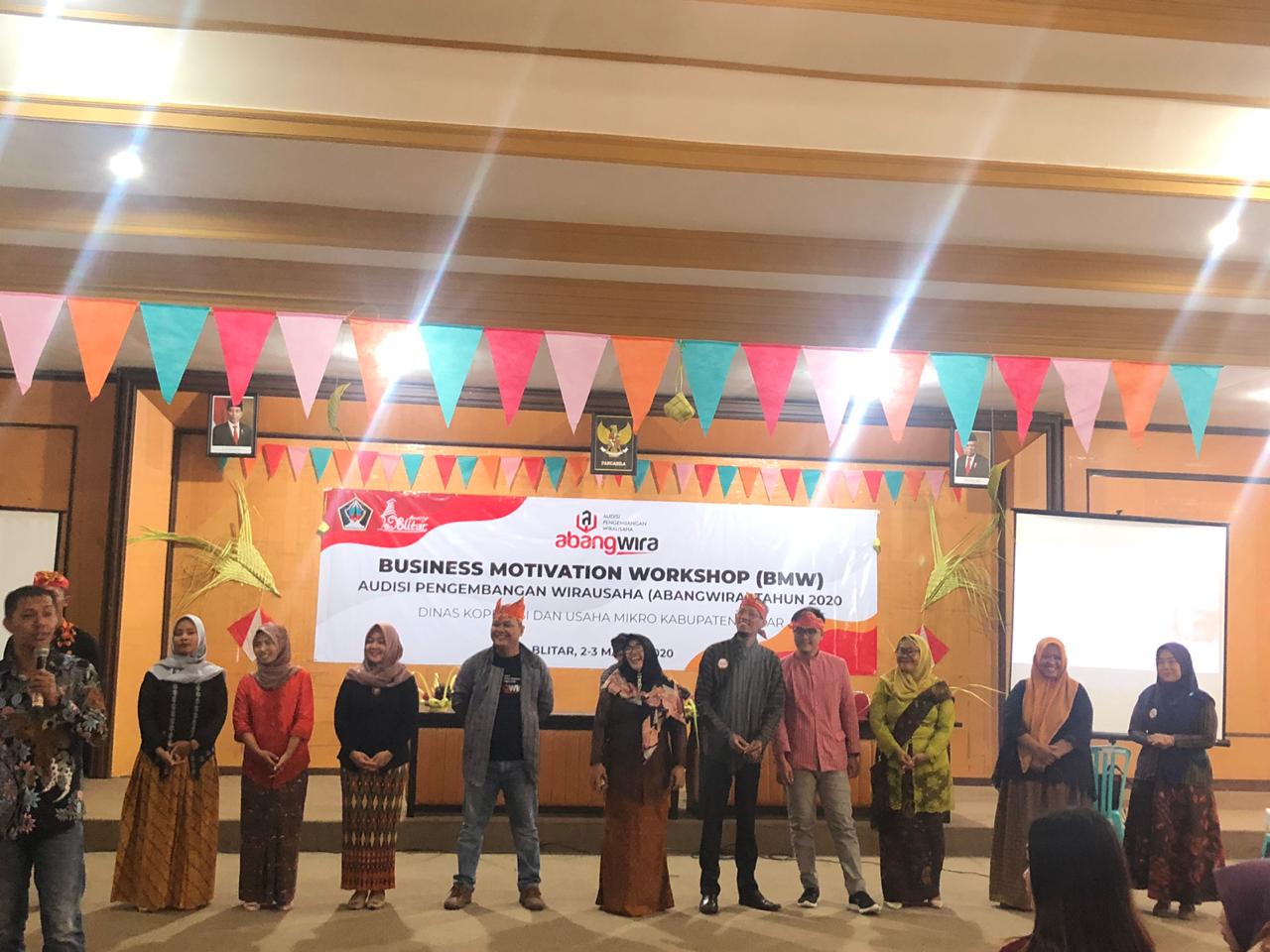 BLITAR KAB – 100 pengusaha muda Blitar mengikuti Business Motivation Workshop (BMW) Audisi Pengembangan Wirausaha (ABANG WIRA) Tahun 2020 yang digelar oleh Dinas Koperasi dan Usaha Mikro Kabupaten Blitar di Aula Dinas Pariwisata, Kebudayaan, Pemuda dan Olahraga, Senin (02/03/2020).