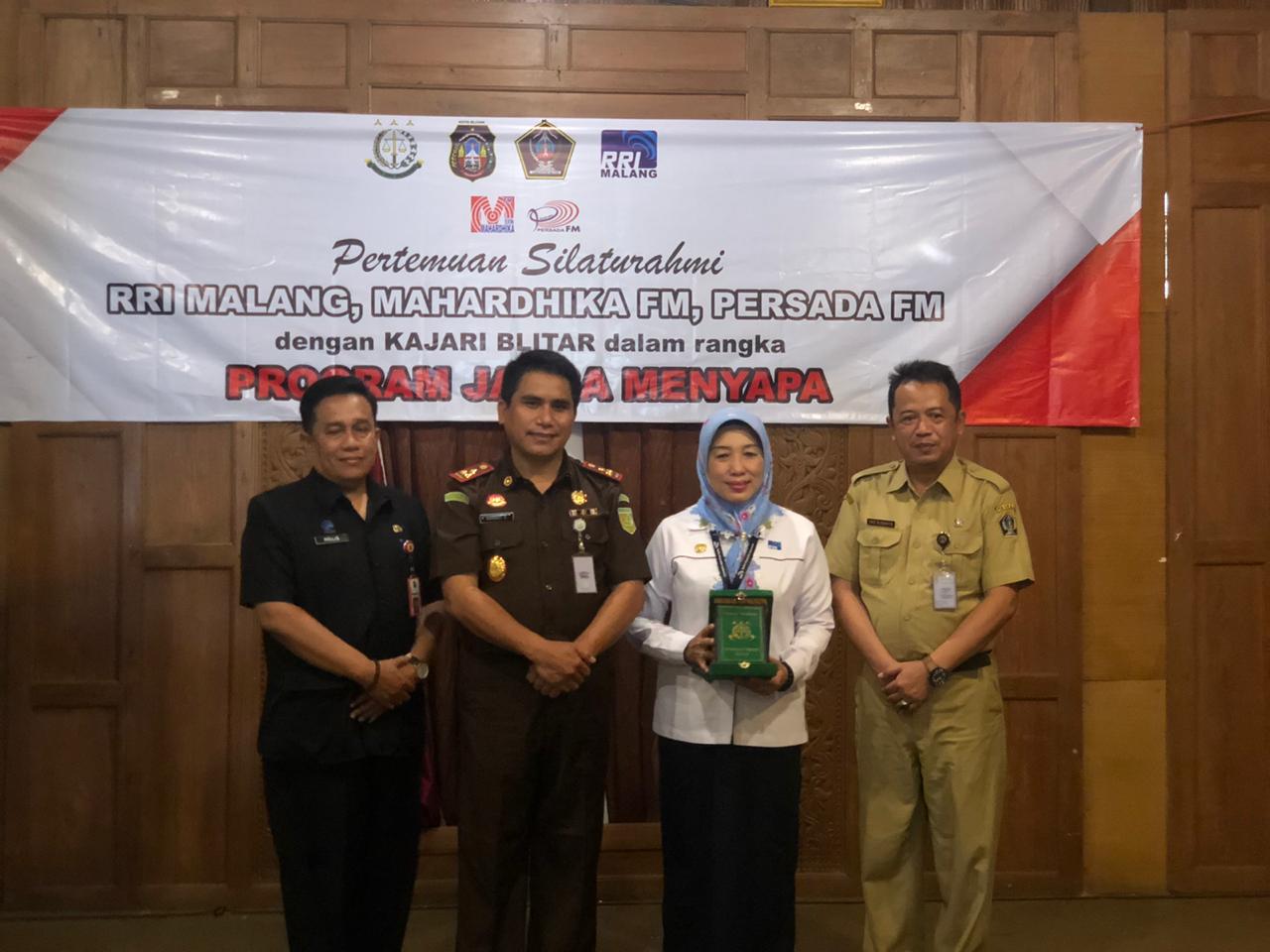 BLITAR KAB – Selasa (10/3/2020) Dinas Komunikasi dan Informatika Kabupaten Blitar mewakili Pemkab Blitar mengikuti kegiatan Pertemuan Silaturahmi RRI Malang, Mahardika FM, Persada FM dengan Kejaksaan Negeri Blitar dalam rangka Program Jaksa Menyapa.