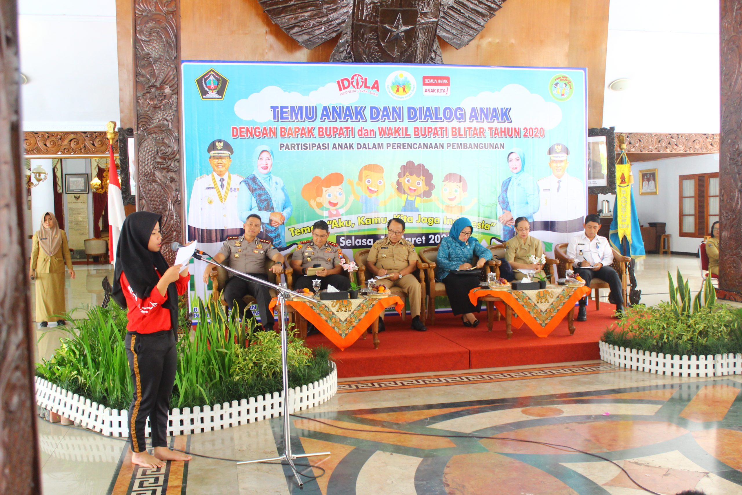 BLITAR KAB – Pemerintah Kabupaten Blitar melalui Dinas PPKBP3A (Dinas Pengendalian Penduduk Keluarga Berencana Pemberdayaan Perempuan dan Perlindungan Anak) Kabupaten Blitar untuk menampung partisipasi anak dalam perencanaan pembangunan dengan menggelar Temu dan Dialog Anak bersama Bapak Bupati Blitar di Pendopo Ronggo Hadinegoro, Selasa (10/03/2020).