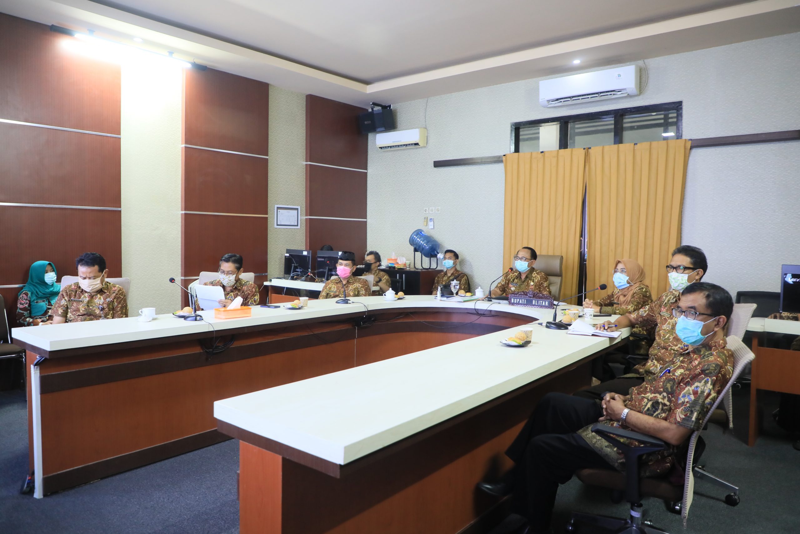 BLITAR KAB – Bupati Blitar Drs. H. Rijanto, MM kembali mengadakan video conference bersama Pimpinan OPD dan Camat di Ruang Command Center, Kamis (02/04/2020).