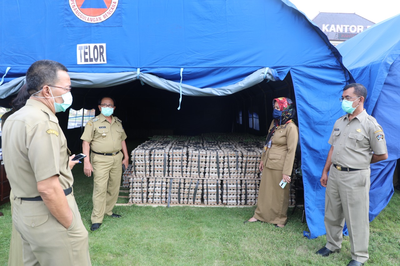 Usai melaksanakan koordinasi dengan Camat, Bupati bergeser ke Posko Gugus Tugas yang ada di Kantor Bupati Blitar untuk mengecek beberapa sembako termasuk telur dan produk UMKM yang akan diberikan besok pagi.