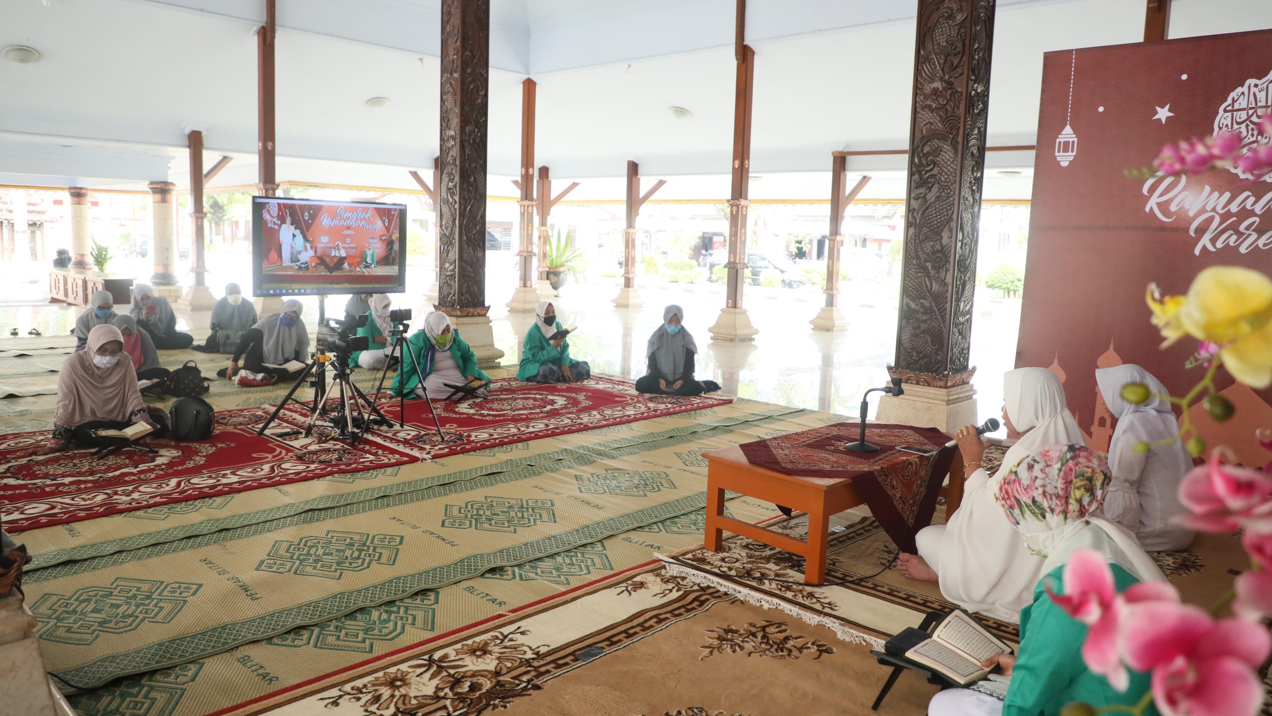BLITAR KAB – Masih dalam rangka Semarak Ramadhan 1441 H, kali ini Gabungan Organisasi Wanita (GOW) Kabupaten Blitar melakukan kegiatan tadarus Al-Qur’an dan siraman rohani di Pendopo Ronggo Hadinegoro, Kamis (30/04/2020).