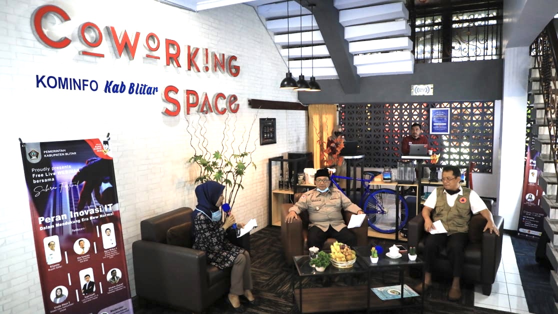 BLITAR KAB – Kamis (11/06/2020) Pemkab Blitar melalui Dinas Kominfo Kabupaten Blitar melaksanakan Webinar : Peran Inovasi IT Dalam Mendukung Era New Normal yang dilaksanakan di Coworking Space.