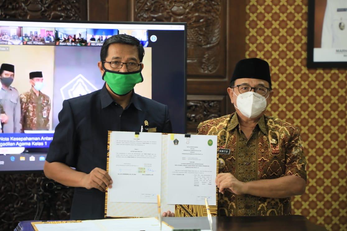 Pemkab Blitar Bersama Pengadilan Agama Blitar Kelas 1A Tanda Tangani MOU Pelayanan Adminduk