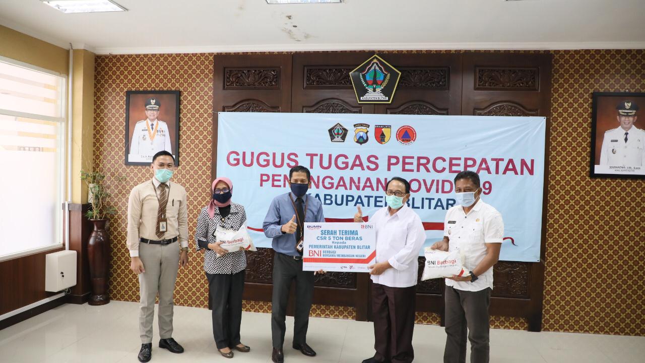 Pemberian CSR berupa 5 Ton beras diberikan Pemimpin BNI 46 Cabang Blitar Aries Muharram dan diterima Langsung oleh Bupati Blitar Drs. Rijanto, MM bersama Wakil Bupati Marhaenis Urip Widodo, S.Sos.