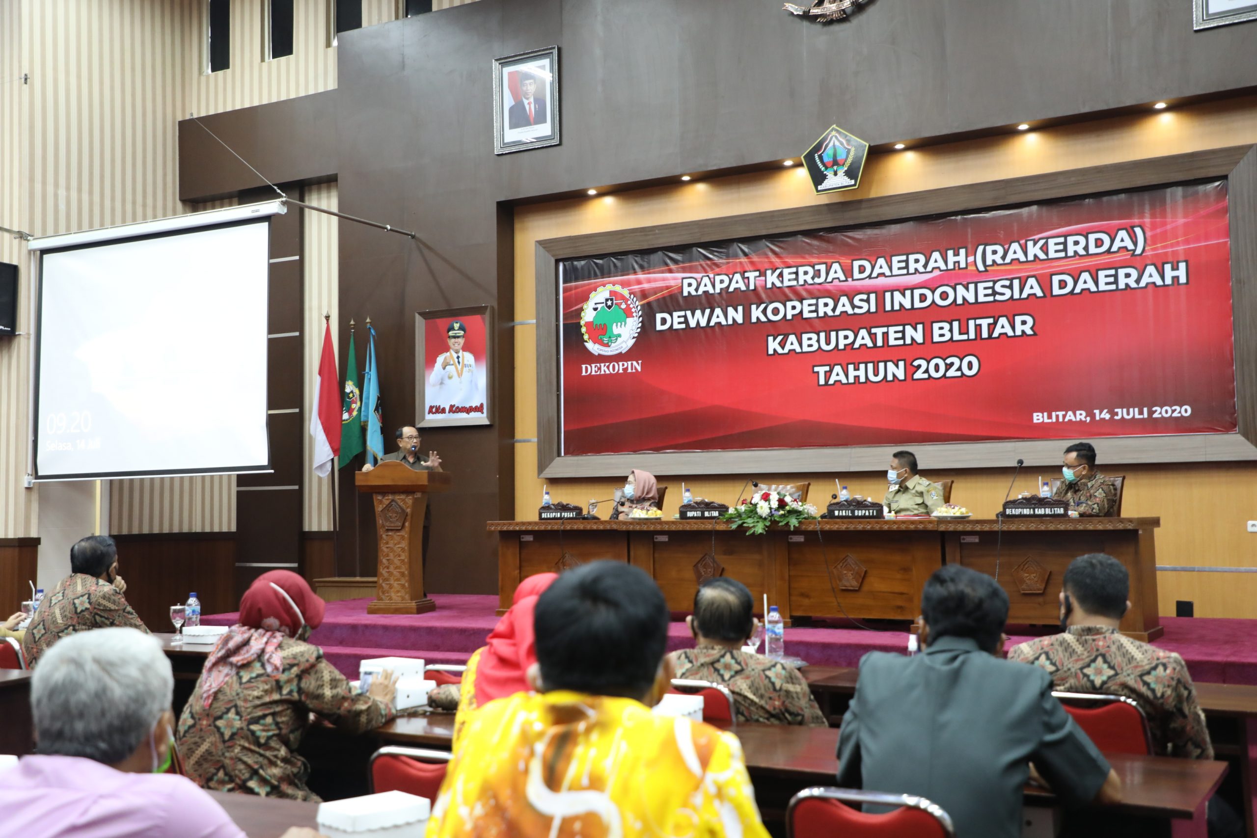 BLITAR KAB – Pemerintah Kabupaten (Pemkab) Blitar menyelenggarakan Rapat Kerja Daerah (Rakerda) Dewan Koperasi Indonesia Daerah (Dekopinda) Kabupaten Blitar di kantor Bupati Blitar, Selasa (14/07/2020).