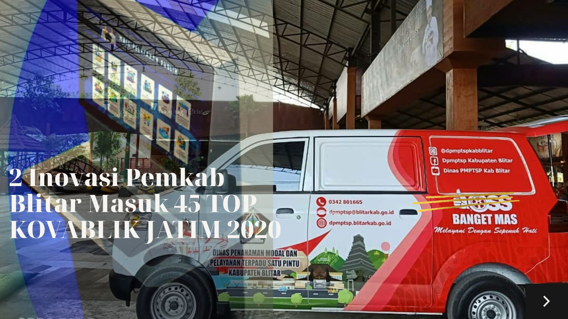 Berdasarkan penilaian terhadap 122 inovasi dari seluruh Kota/Kabupaten se-Jawa Timur, Pemerintah Kabupaten Blitar dengan 2 (dua) inovasinya berhasil masuk TOP 45 KOVABLIK JATIM (Kompetisi Inovasi Pelayanan Publik Jawa Timur) Tahun 2020.