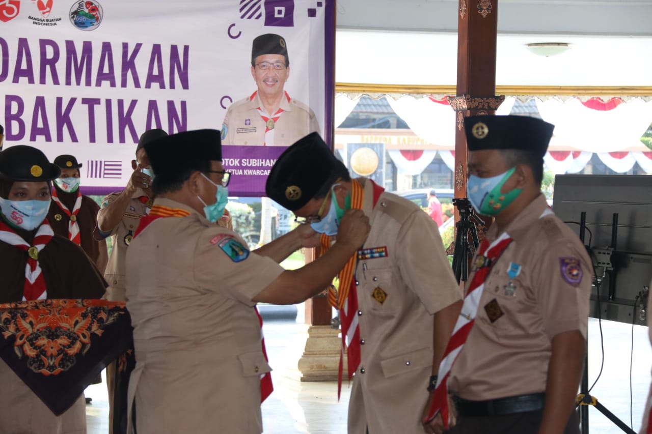 BLITAR KAB – Jum’at (14/08/2020) Bupati Blitar Drs. H. Rijanto, MM selaku Ketua Majelis Pembimbing Cabang (MABICAP) didampingi Sekda Drs. Totok Subihandono, M.Si selaku Ketua Kwartir Cabang Blitar (KWARCAP) mengikuti Peringatan Hari Pramuka ke-59 bertempat di Pendopo Ronggo Hadinegoro.