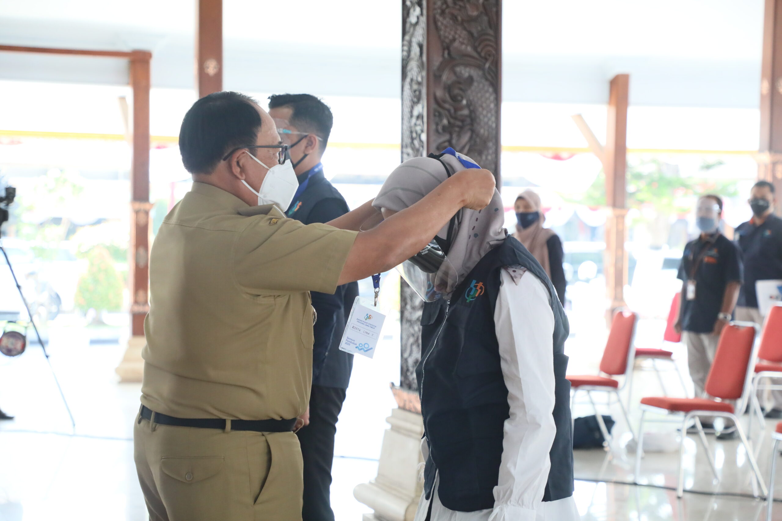 Dalam acara Kick Of SP 2020 ini dilaksanakan pula penyematan tanda petugas sensus secara simbolis oleh Bupati Blitar.
