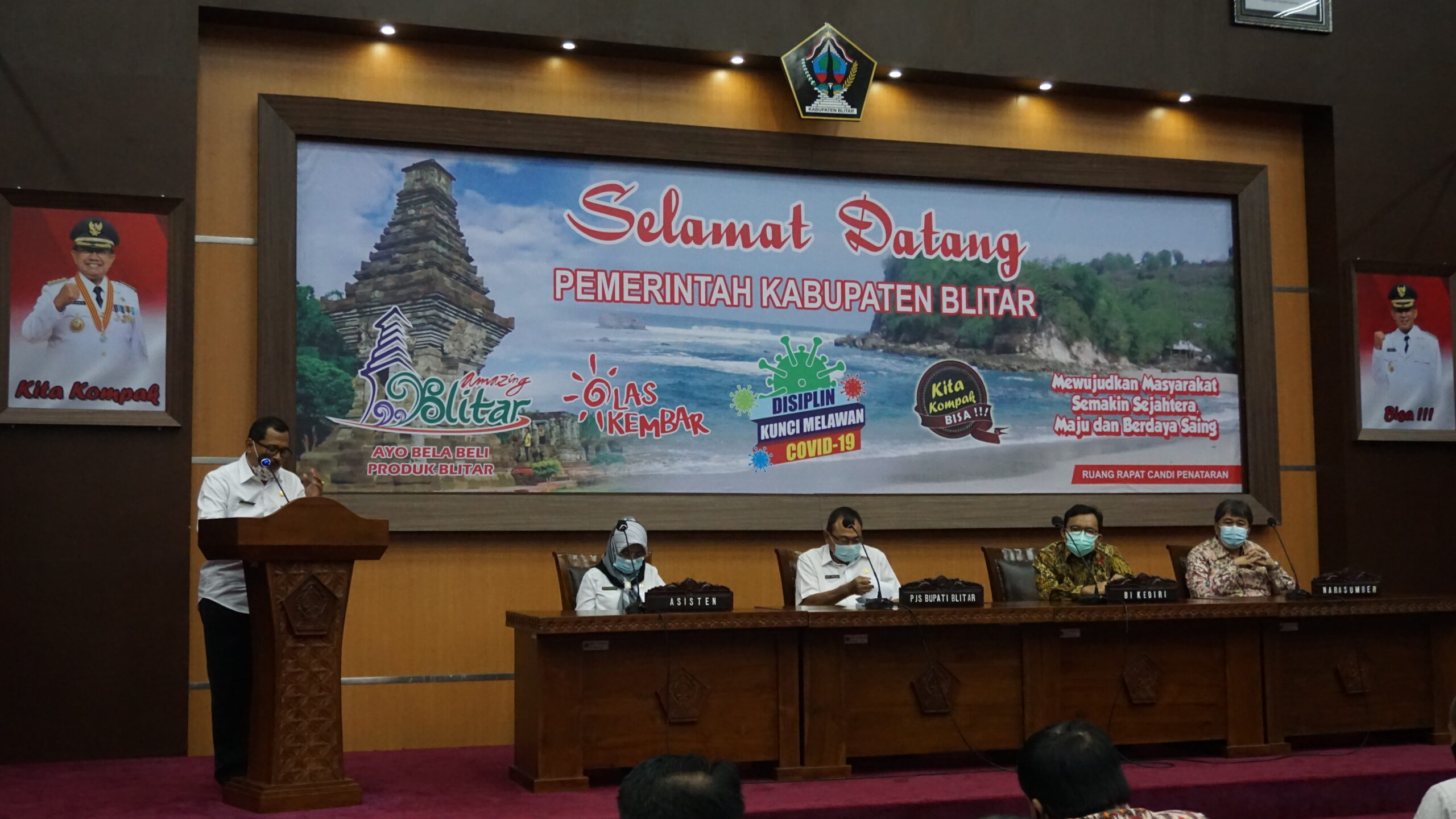 BLITAR KAB – Pemkab Blitar mengadakan High Level Meeting TPID (Tim Pengendali Inflasi Daerah) dengan tema “Peluang Ekspor Produk Unggulan Kabupaten Blitar di Tengah Pandemi Covid-19” yang dilaksanakan di Ruang Candi Penataran, Kantor Kabupaten Blitar, Kanigoro. Acara tersebut dibuka langsung oleh Pjs Bupati Blitar Drs. Budi Santosa yang didampingi Asisten Ekonomi Pembangunan, Perwakilan BI Kediri dan Narasumber FTA (Free Trade Agreement), Rabu (14/10/2020).