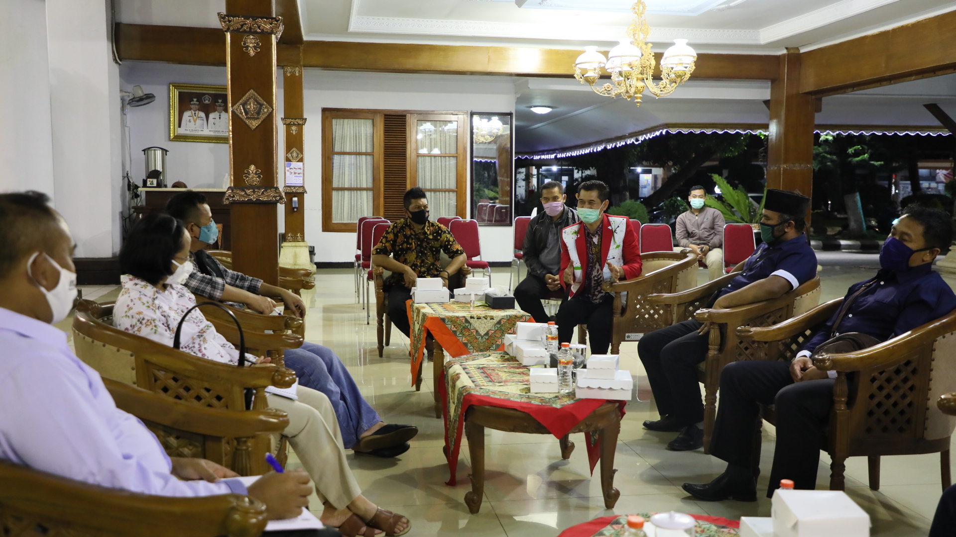 BLITAR KAB – Gugus Tugas Penanganan Covid-19 Kabupaten Blitar melakukan musyawarah dengan Paguyuban Seni, Pengusaha Terop dan Sound System, serta Event Organizer (EO) di Pendopo Ronggo Hadinegoro, Sabtu (24/10/2020) malam.