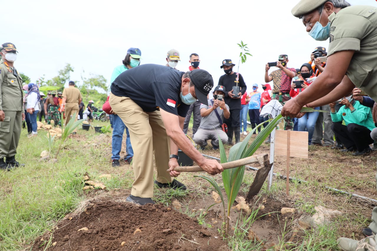 BLITAR KAB – Penjabat Sementara (Pjs) Bupati Blitar Drs. Budi Santosa turut berpartisipasi menanam 10 ribu bibit tanaman produktif dan pohon lindung di Desa Tambakrejo Kecamatan Wonotirto, Selasa (27/10/2020).