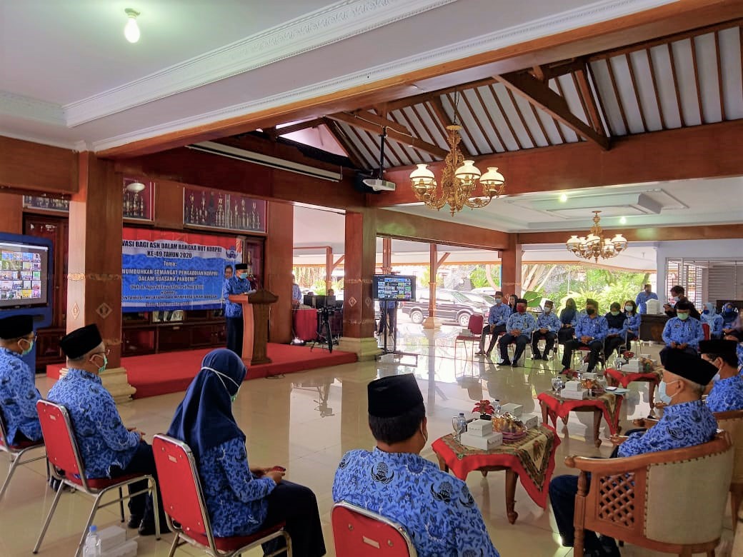 BLITAR KAB – Menyambut hari ulang tahun Korpri ke-49 Pemerintah Kabupaten Blitar gelar acara pemberian motivasi kepada anggota Korpri di Kabupaten Blitar, Senin (30/22/2020).