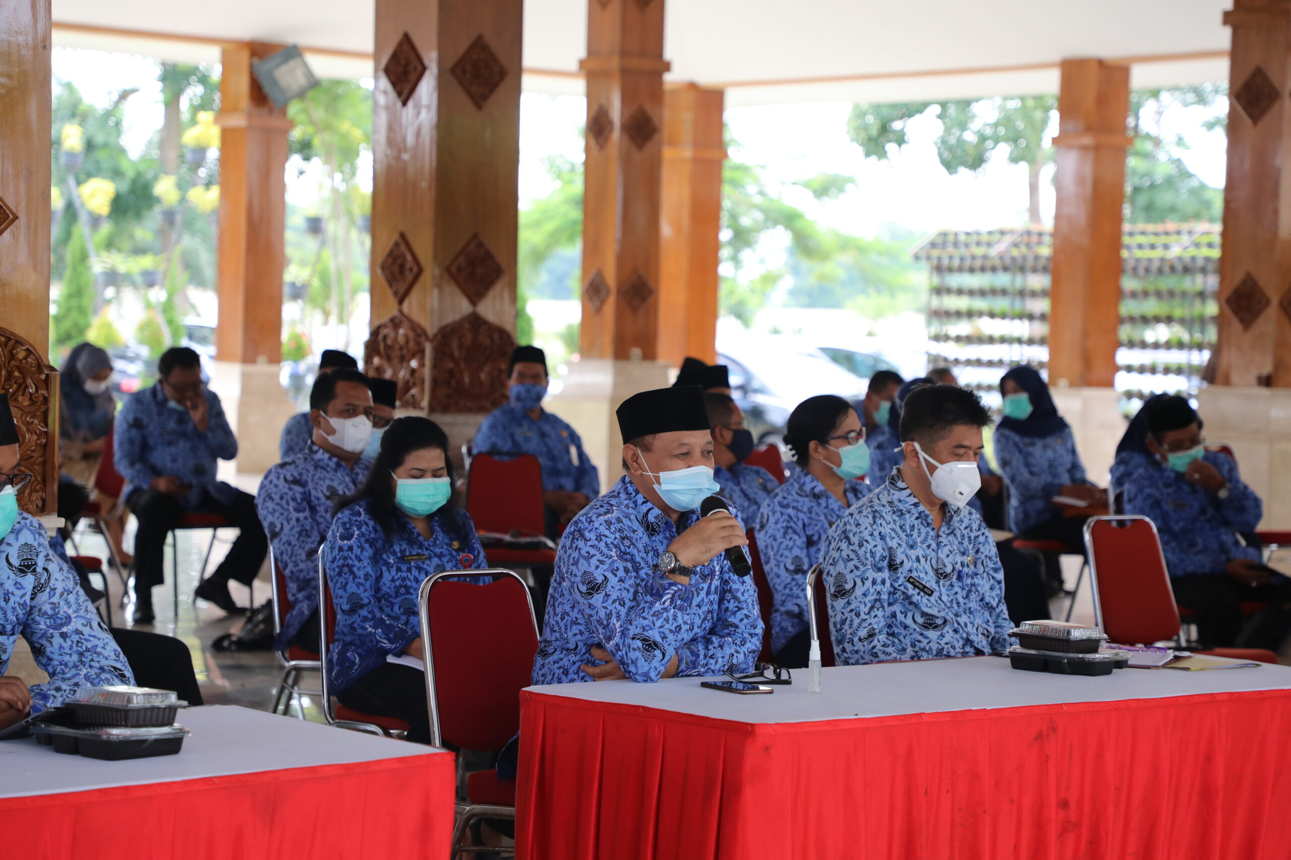 BLITAR KAB – Pemkab Blitar menggelar rapat terkait evaluasi satgas Covid-19 pada Senin (18/01/2021). Kegiatan ini diikuti seluruh Aparatur Sipil Negara seperti Plh Sekda, Asisten, Kepala OPD serta perwakilan Kecamatan. Hal ini merupakan tindak lanjut atas adanya Kemendagri tentang pembentukan Satgas Covid-19 di setiap daerah.