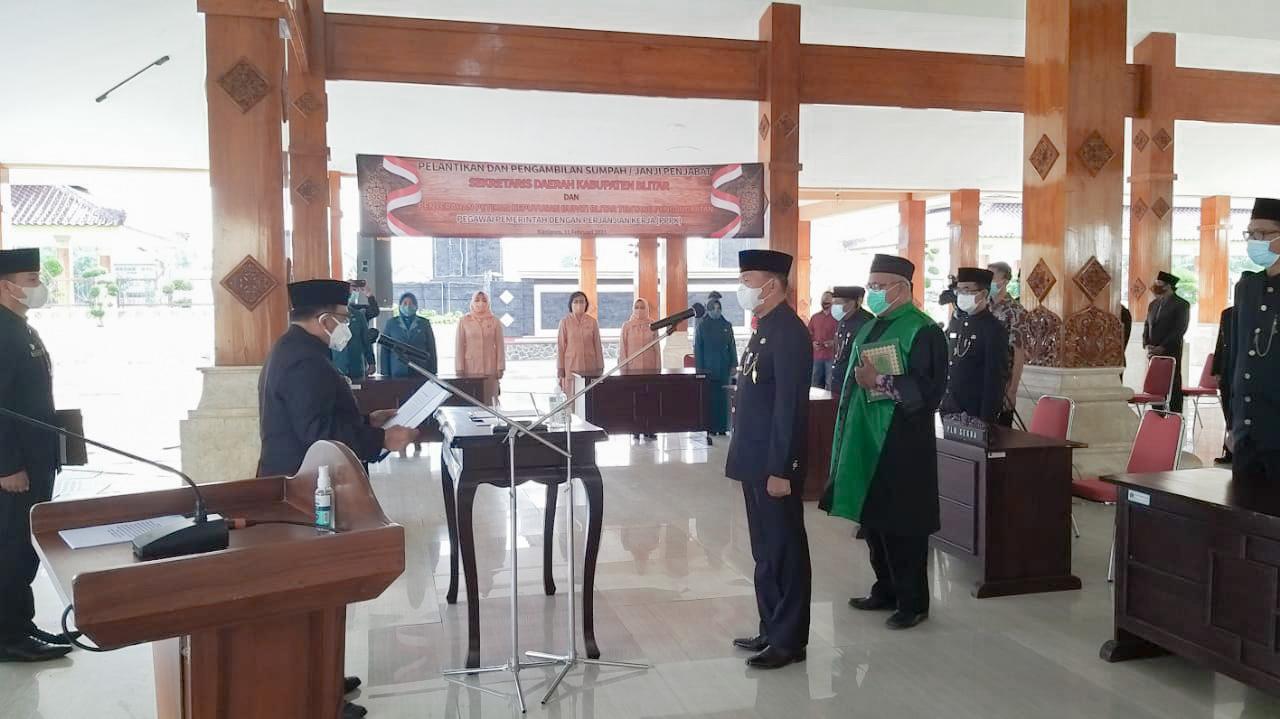 BLITAR KAB – Bupati Blitar Drs. H. Rijanto, MM melantik Penjabat (Pj) Sekretaris Daerah (Sekda) Kabupaten Blitar, di Pendopo Sasana Adhi Praja, Kamis (11/02/2021).