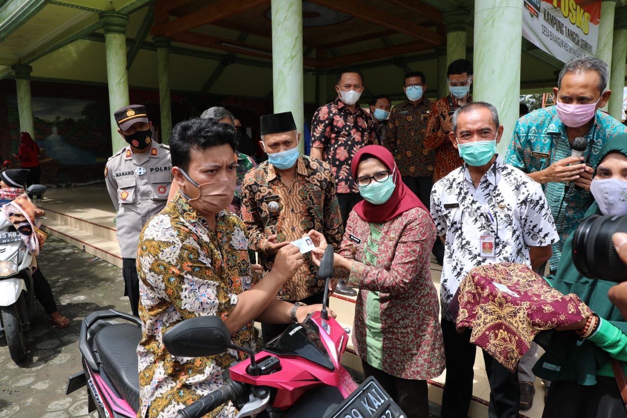 Bupati Blitar Hj Rini Syarifah pagi ini meninjau langsung pelayanan jemput bola (Jebol) Adminduk yang dilakukan di Kantor Desa Binangun, Jumat (5/3/2021).