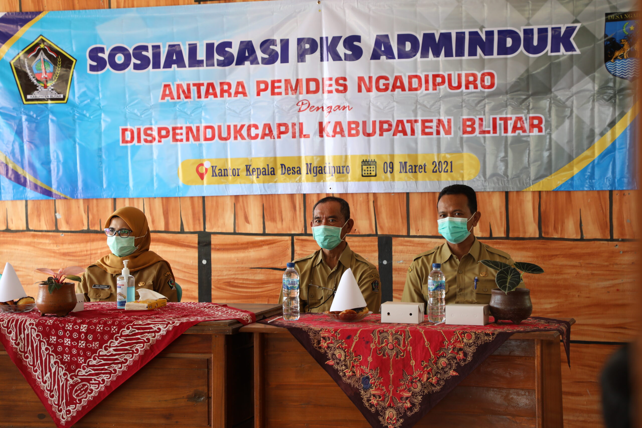 BLITAR KAB – Bupati Blitar Rini Syarifah menghadiri kegiatan sosialisasi PKS Adminduk di Desa Ngadipuro Kecamatan Wonotirto,Selasa (09/03/2021).
