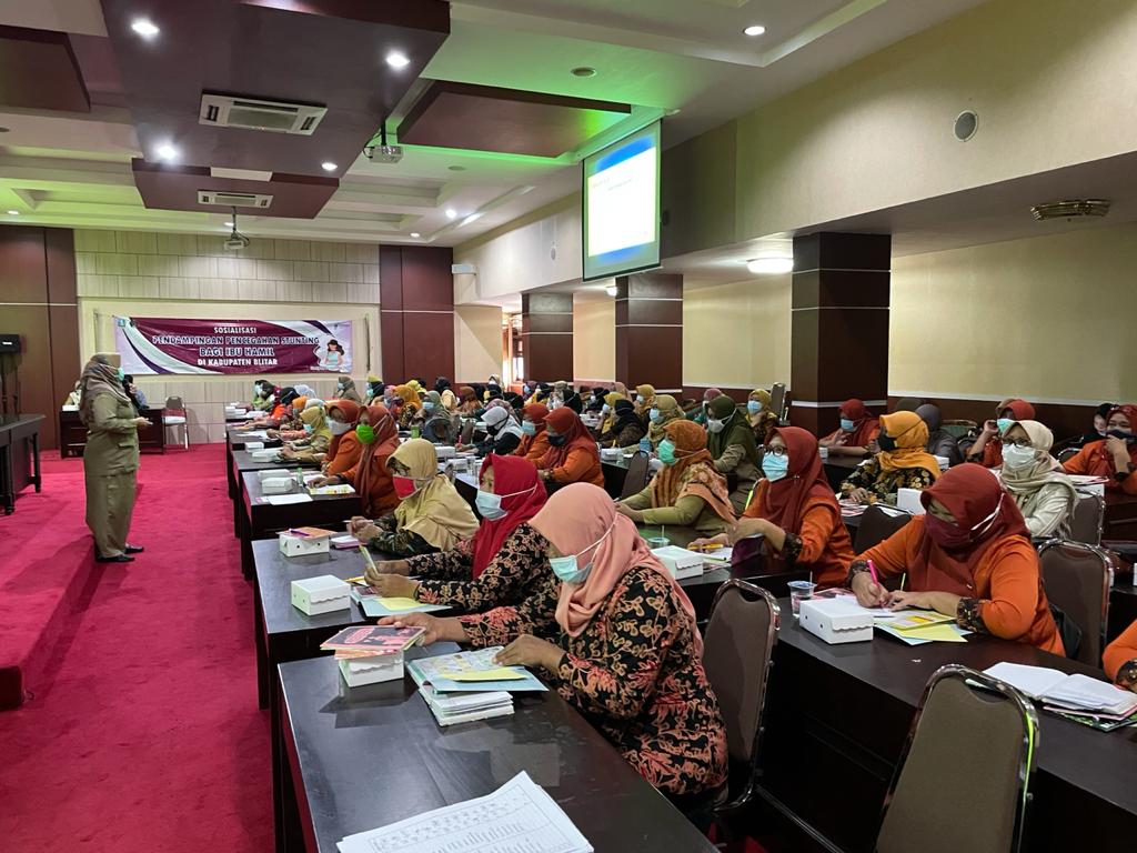 Selasa (6/4/21) Dinkes Kabupaten Blitar menggelar Sosilisasi Pendampingan Pencegahan Stunting Bagi Ibu Hamil yang diikuti oleh 100 orang kader pendamping, 9 petugas promkes, 9 petugas gizi dan 20 bidan desa di Ruang Perdana, Pemkab Blitar. Acara tersebut dilaksanakan dua hari dengan peserta yang sudah dibagi.