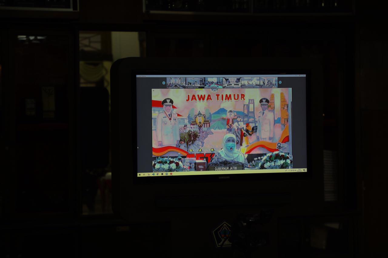 Sambutan Gubernur Jawa Timur Khofifah Indar Parawansa yang diikuti Pemkab secara daring