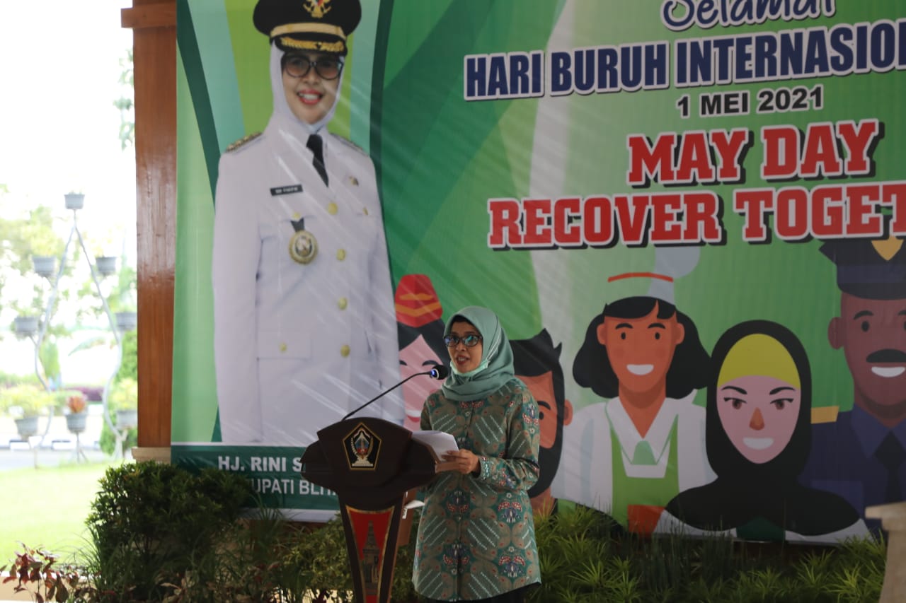 Dalam sambutanya, Mak Rini mengucapkan terima kasih kepada pengurus Asosiasi Pengusaha Indonesia (APINDO), Serikat Pekerja Seluruh Indonesia (SPSI) dan Serikat Buruh Muslim Indonesia (SARBUMUSI) yang telah bersinergi dengan pemkab Blitar dalam menyelenggarakan Hari Buruh Internasional tahun 2021.