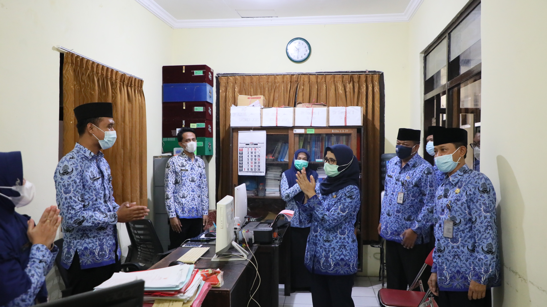 Selain itu, Mak Rini didampingi Asisten I dan Kepala BKPSDM melakukan sidak hari pertama masuk kerja dilingkungan pemerintah kabupaten Blitar pasca libur Hari Raya Idul Fitri 1442 H.