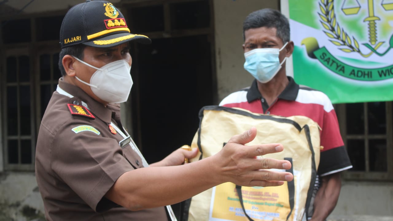 BLITAR KAB – Kepala Kejaksaan Negeri Blitar Bangkit Sormin S.H., M.H., bersama warga Adhyaksa memberikan bantuan sosial bagi warga terdampak Gempa Bumi di Desa Margomulyo, Kecamatan Panggungrejo, Selasa (25/5/2021. Bantuan sosial yang diserahkan berupa beras 50 kg, Mie Instan 20 box dan semen 10 sak secara simbolis untuk nantinya akan didistribusikan oleh Kepala Desa kepada warganya.