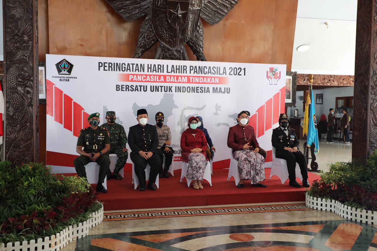 BLITAR KAB – Pemerintah Kabupaten Blitar mengikuti upacara Hari Lahir Pancasila secara virtual dengan pemerintah pusat, kegiatan ini dihadiri oleh Forum Komunikasi Pimpinan Daerah (Forkopimda) Blitar Raya, Sekretaris Daerah, Asisten Pemerintahan dan beberapa Kepala Organisasi Perangkat Daerah di Pendopo Ronggo Hadi Negoro, Selasa (01/06/2021).