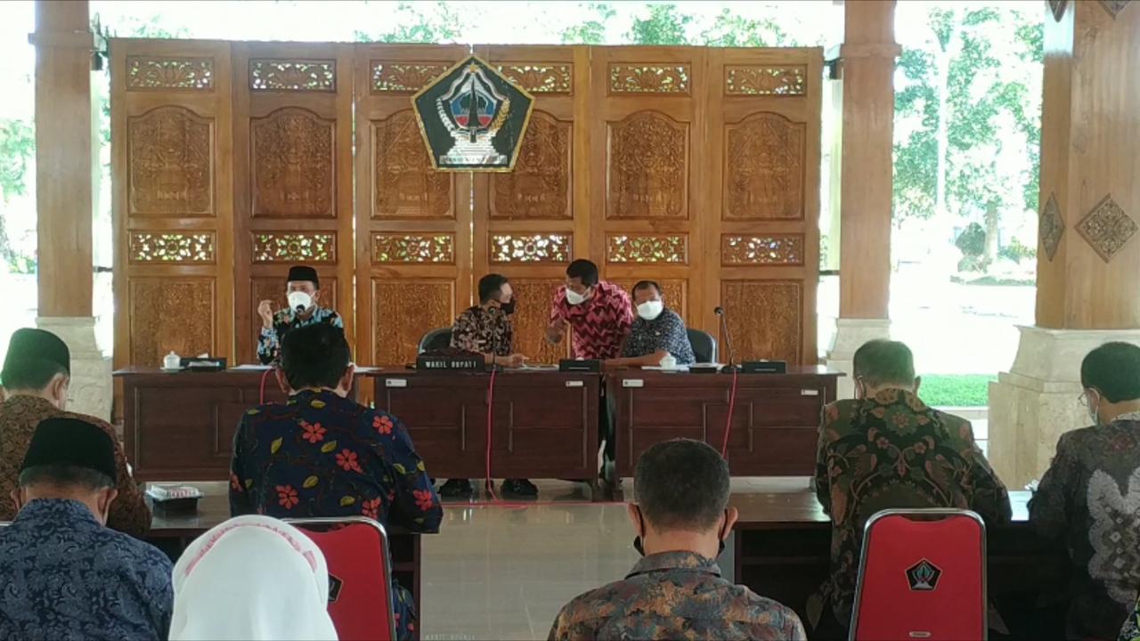 BLITAR KAB – Pemerintah Kabupaten Blitar menggelar rapat koordinasi penanganan Pemberlakuan Pembatasan Kegiatan Masyarakat (PPKM) mikro darurat bersama dengan Kepala OPD bertempat di Kantor Pemkab Kanigoro, Jumat(2/7/2021).
