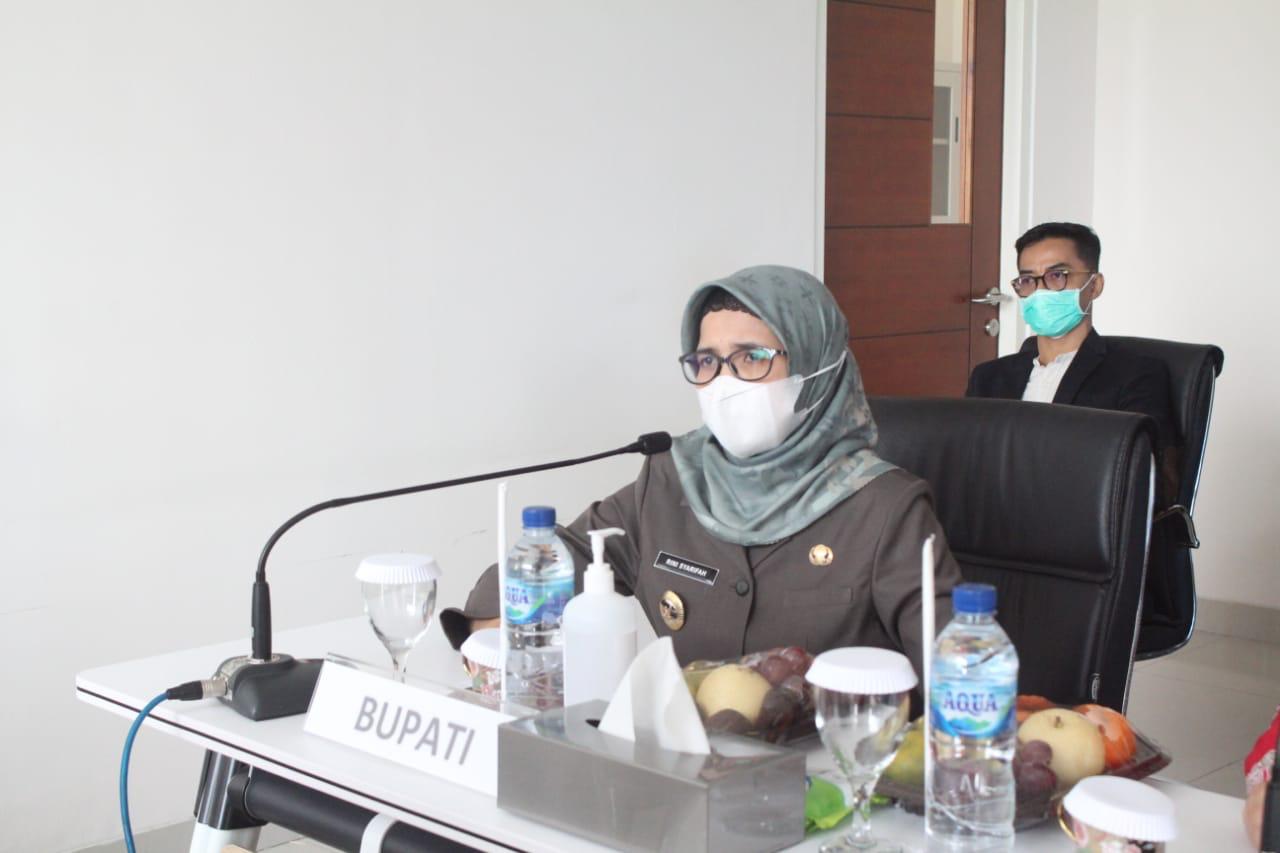 BLITAR KAB – Bupati Blitar Rini Syarifah melakukan rapat koordinasi bersama Kepala Puskesmas se-Kabupaten Blitar secara virtual. Sedangkan Wakil Bupati didampingi Asisten I meninjau sarana dan prasarana di RSUD Srengat, Kamis (8/7/2021).