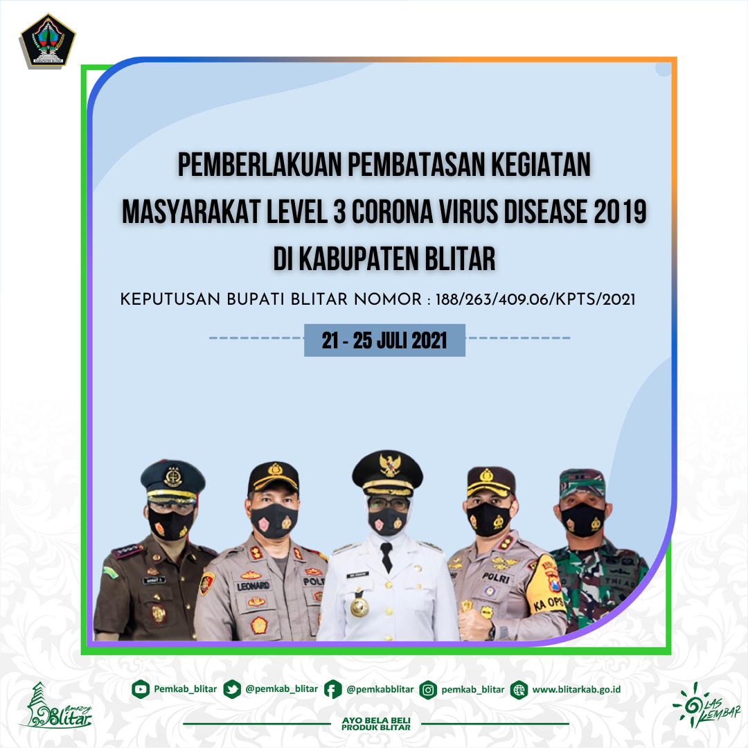 SK PPKM Level 3 di Kabupaten Blitar 21-25 Juli 2021