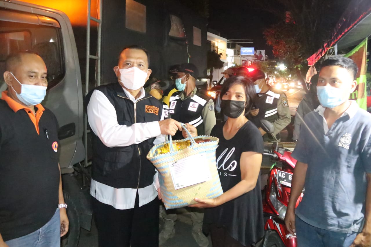 Selain menyerahkan bantuan, Satpol PP juga menghimbau PK5 agar taat dan mematuhi protokol kesehatan dengan aturan PPKM Level 3 menutup dagangannya pukul 20.00 wib.