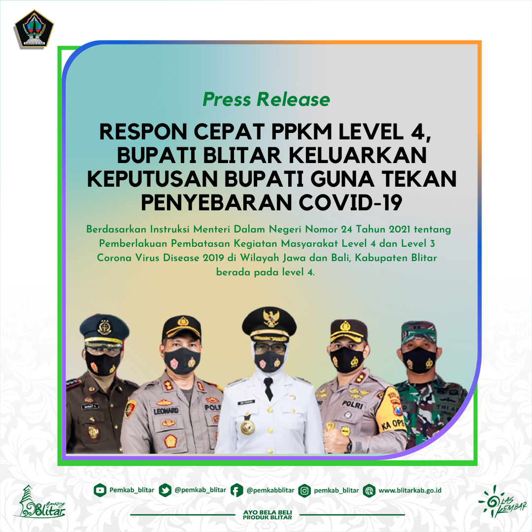 Keputusuan Bupati Blitar Nomor 188/267/409.06/KPTS/2021 Terkait Respon Cepat PPKM Level 4