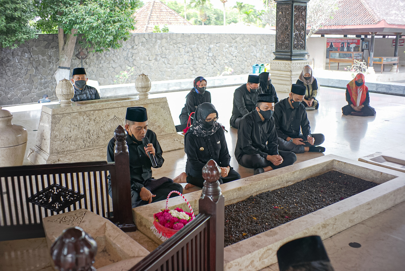 BLITAR KAB – Bupati Blitar Rini Syarifah didampingi Wakil Bupati Blitar, Sekretaris Daerah, Ketua Dekranasda, Ketua DPRD dan beberapa Kepala OPD melakukan ziarah menyambut Hari Jadi Blitar Ke-697, Rabu (4/8/2021).
