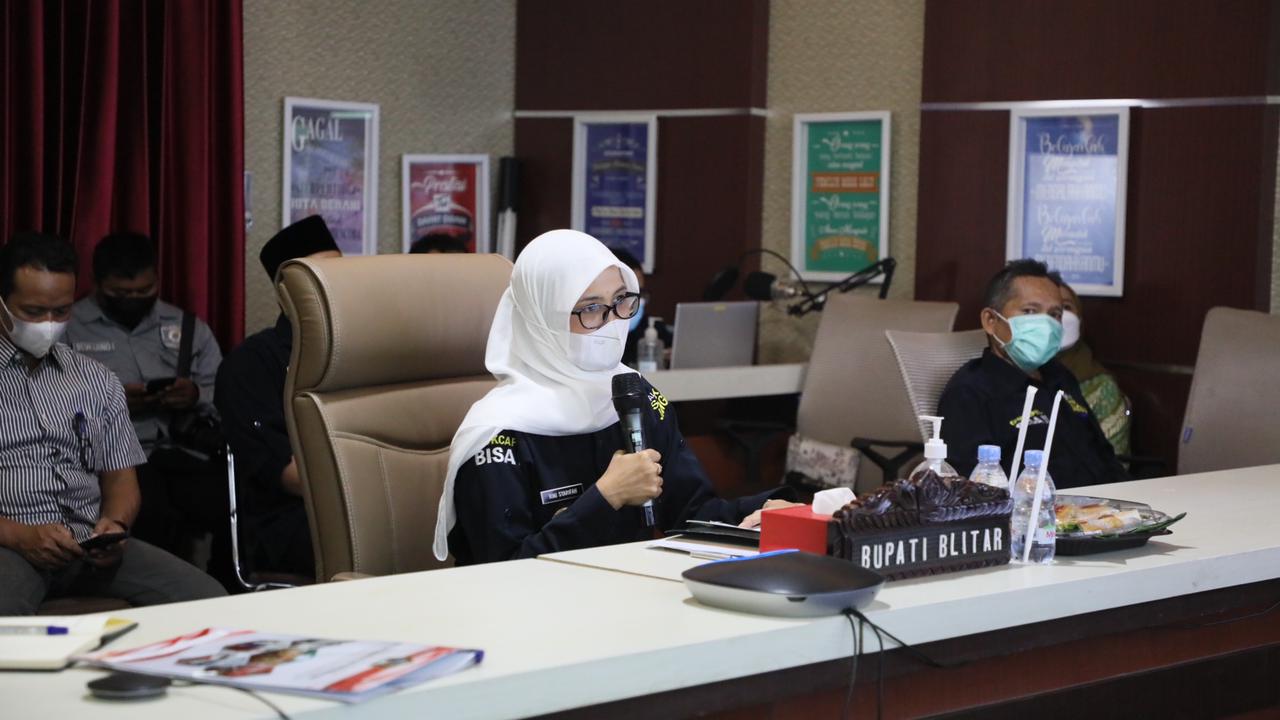 BLITAR KAB – Bupati Blitar Rini Syarifah didampingi Kepala Dinas Kependudukan dan Pencatatan Sipil menyaksikkan penandatanganan perjanjian kerja sama antara 65 Desa / Kelurahan di 9 Kecamatan bertempat di Ruang Command Center Kabupaten Blitar pada Jumat 13/8/2021.