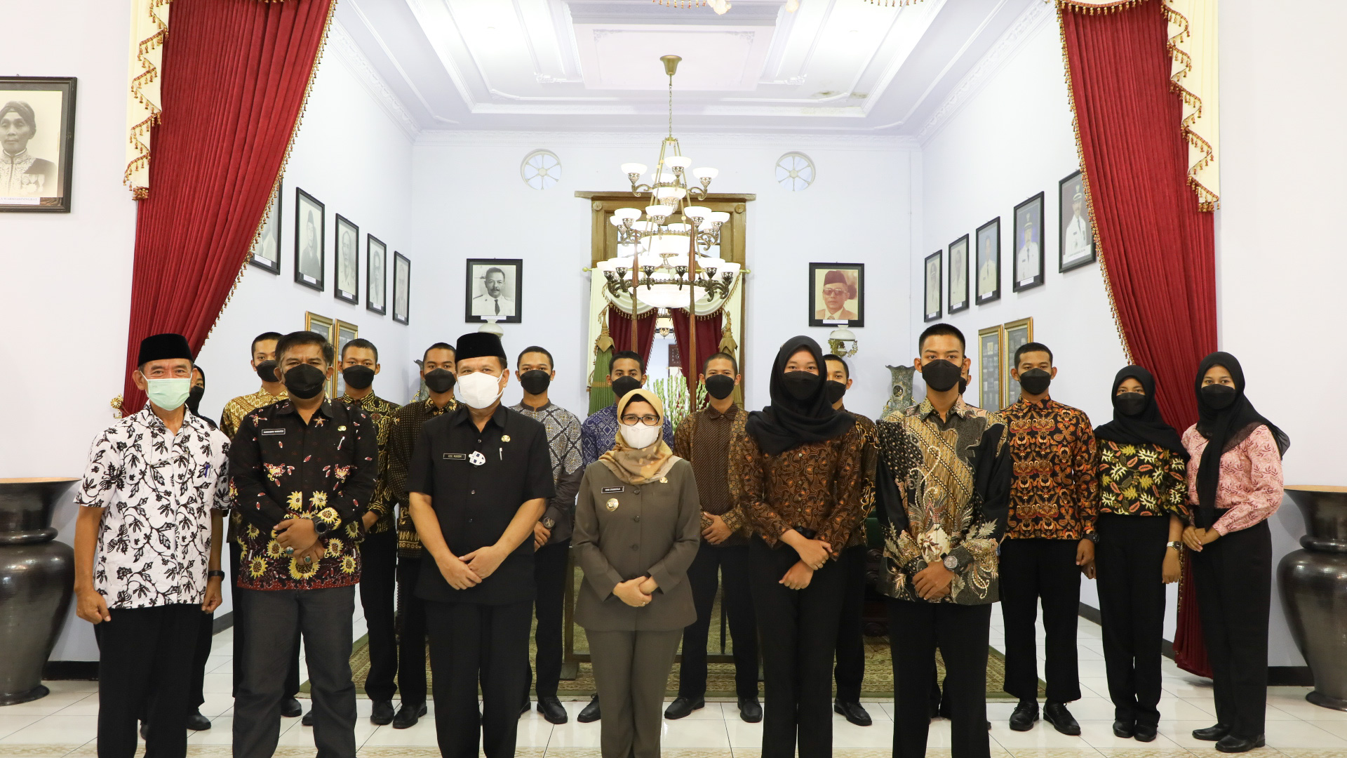 BLITAR KAB– Bupati Blitar Rini Syarifah bersama Wakil Bupati Blitar didampingi Sekda, Kepala Dinas Padbudpora, Plt Kepala Dinas Pendidikan menerima kunjungan purna paskibra Kabupaten Blitar dan paskibra tingkat provinsi bertempat di pendopo RHN, Jumat(3/9/2021).