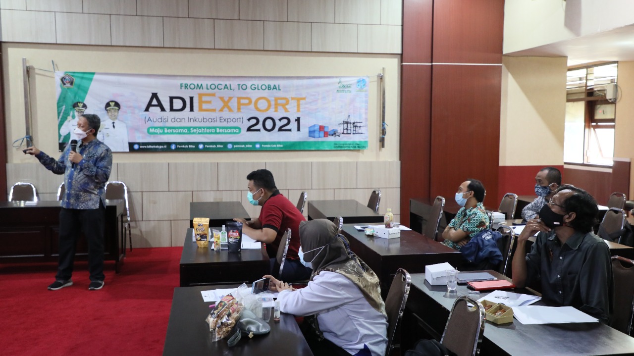 BLITAR KAB – Dinas Perindustrian dan Perdagangan Kabupaten Blitar menggelar AdiExport From Local To Global yang diikuti oleh para pelaku usaha bertempat di Ruang Perdana, Senin (20/9/2021).