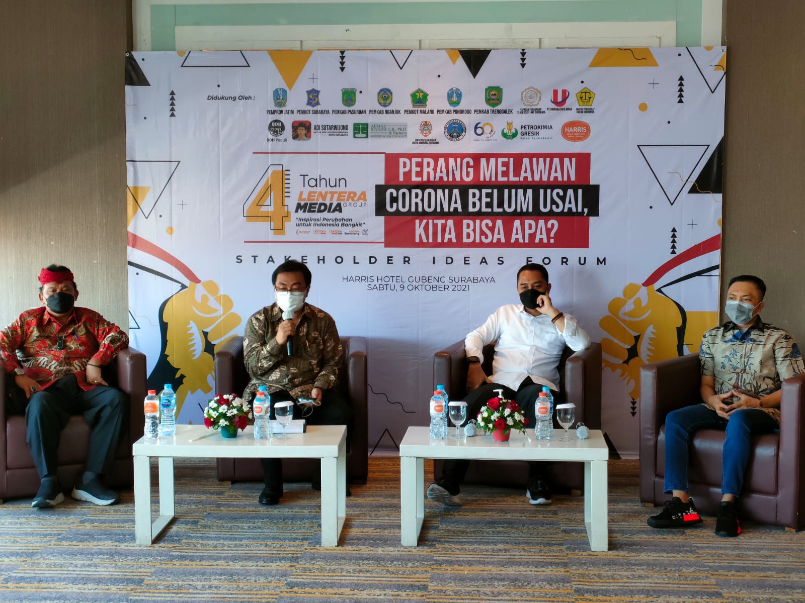 BLITAR KAB – Wakil Bupati Blitar Rahmat Santoso, S.H, M.H beberapa waktu lalu menghadiri kegiatan lentera talk mengusung tema “Perang Melawan Corona Belum Usai, Kita Bisa Apa?” bersama dengan 4 Kepala Daerah lainya dengan keynote speaker Khofifah Indar Parawansa Gubernur Jawa Timur.