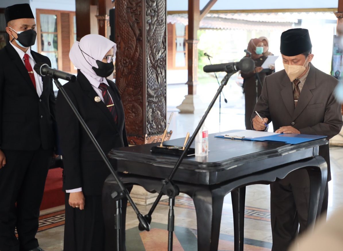 BLITAR KAB – Bupati Blitar Rini Syarifah melantik pejabat di lingkungan Pemerintah Kabupaten Blitar, Senin (11/10/2021) di Pendopo Ronggo Hadi Negoro.